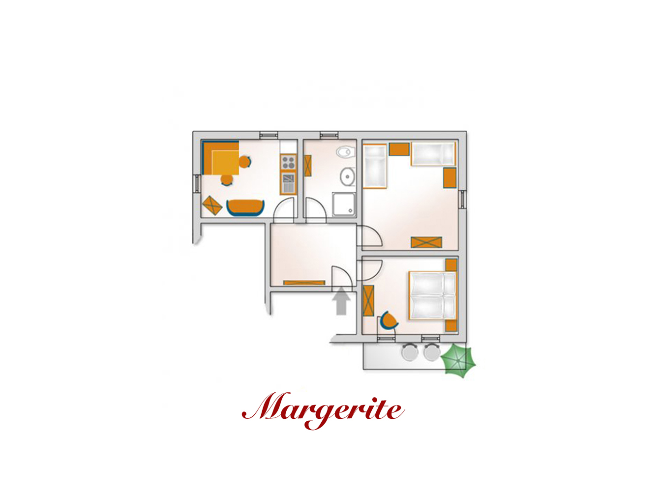 Für Familien ist unsere “Margerite” perfekt geeignet. Dank der zwei separaten Zimmer, finden Eltern und Kinder genügend Raum um sich auszubreiten. Die Wohnung ist geeignet für bis zu fünf Personen. In der großen Wohnküche haben alle Platz für gemeinsames Essen oder einen gemütlichen Spieleabend. Zudem verfügt die Ferienwohnung über einen Balkon, mit Blick auf den Hof. Die “Margerite” befindet sich im 1. Obergeschoss des Nebenhauses direkt gegenüber.