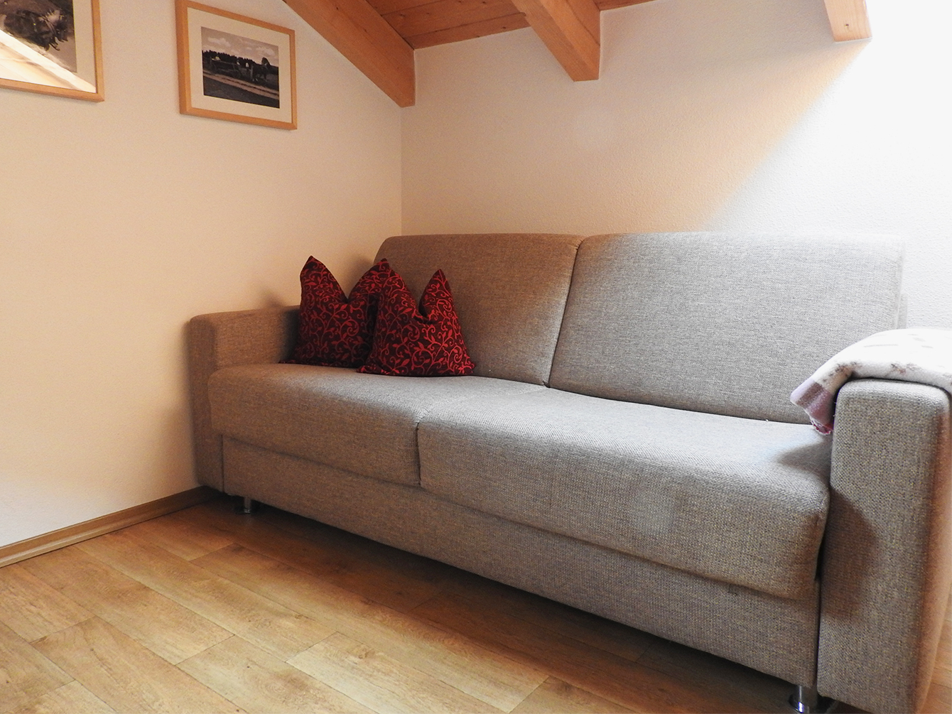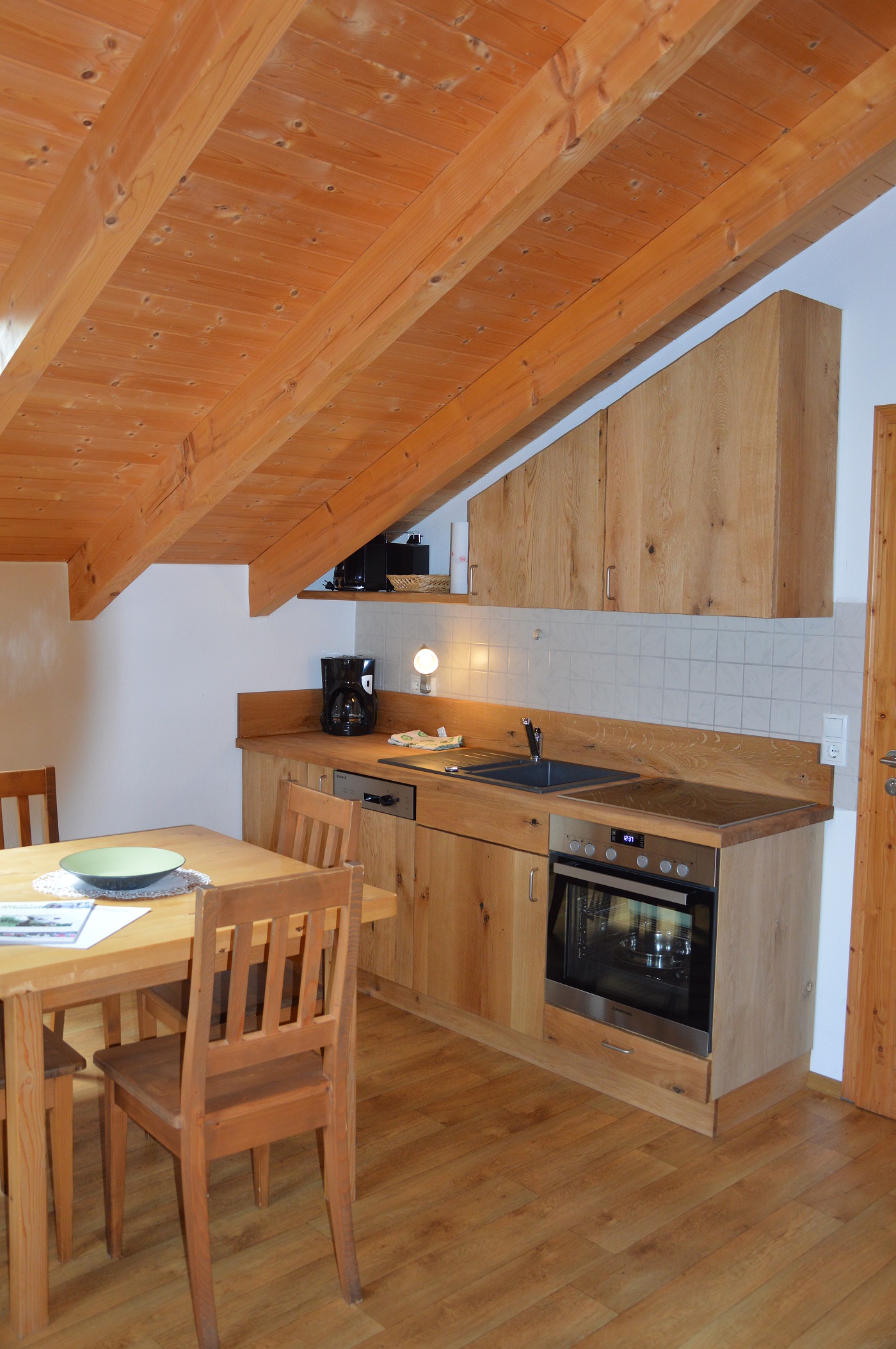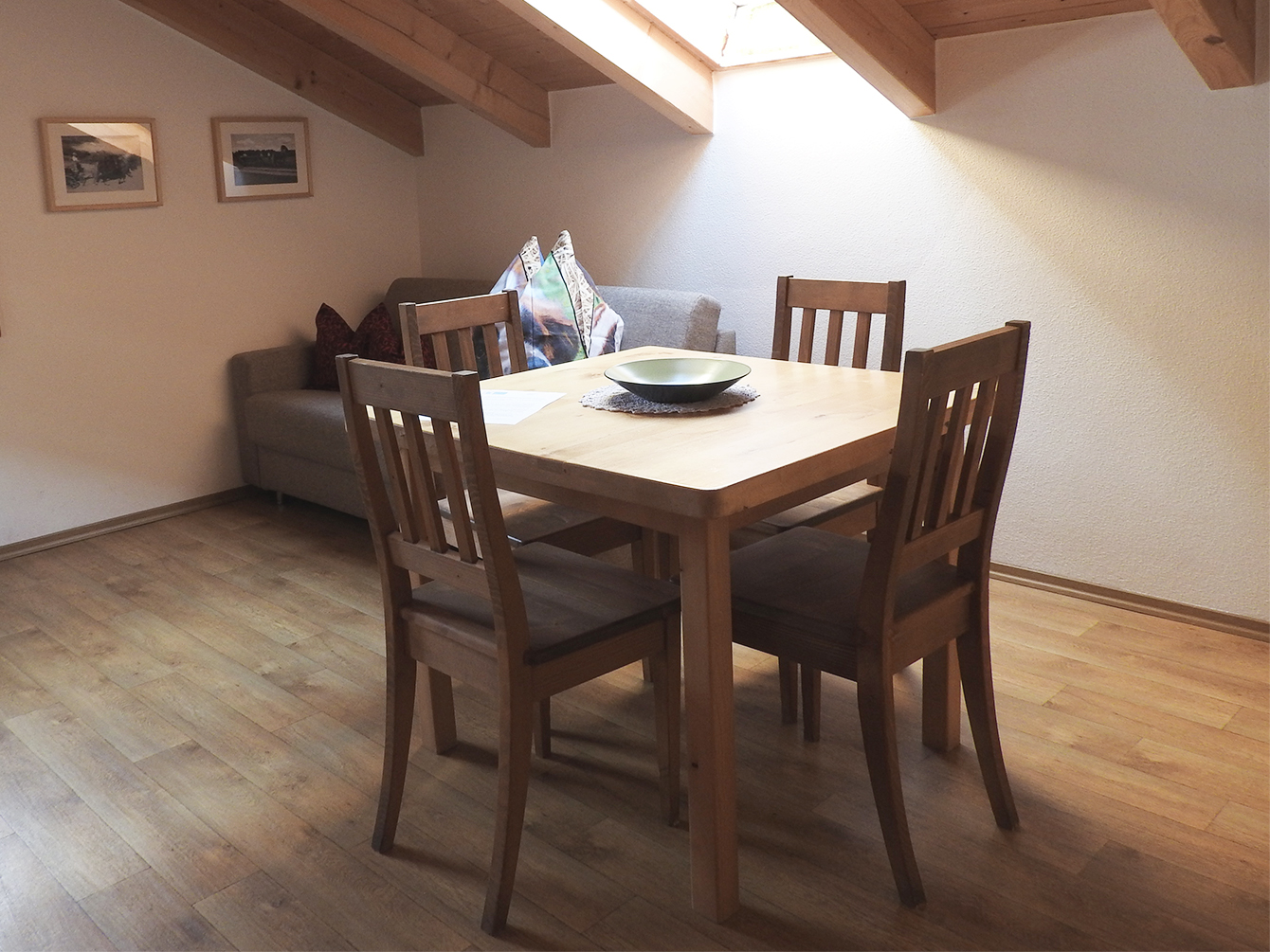 - Kleine Wohnküche mit gemütlichem Essbereich und Ausziehcouch